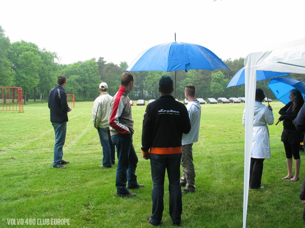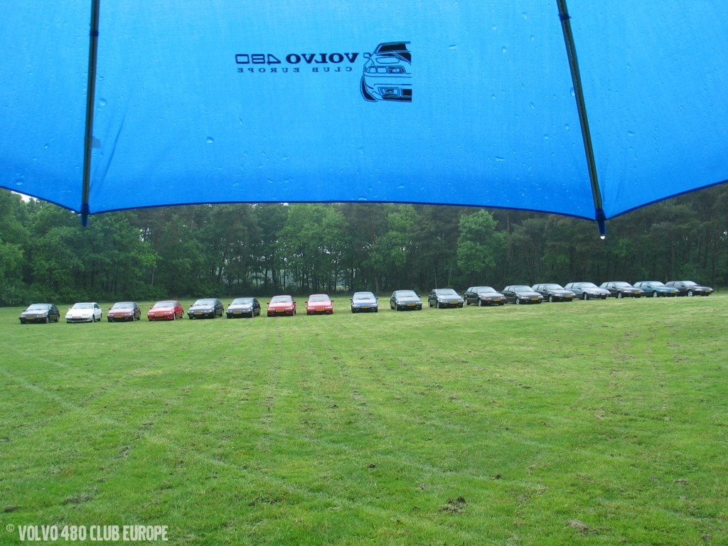 Saturday morning more and more Volvo 480 enthusiasts arrived on the meetingfield. Sadly we were accompanied by lots of rain… But eventually between 15 to 20 Volvo 480 showed up. Then it was to time to start a nice (but rainy)